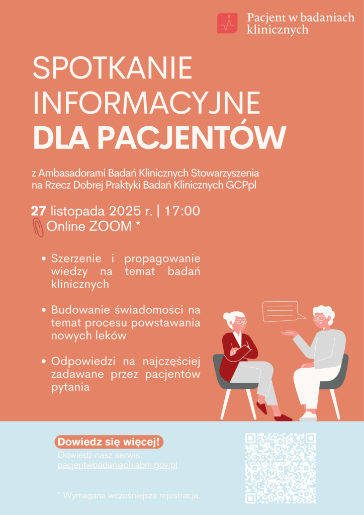 Serdecznie zapraszamy na ostatnie w tym roku bezpłatne spotkanie on-line organizowane przez Agencję Badań Medycznych we współpracy z Ambasadorami Badań Klinicznych Stowarzyszenia na Rzecz Dobrej Praktyki Badań Klinicznych GCPpl.